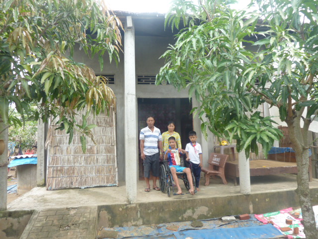 Below are the pictures of Khanh and his family receiving our gift in front of their house, and the thank-you letter from his father.