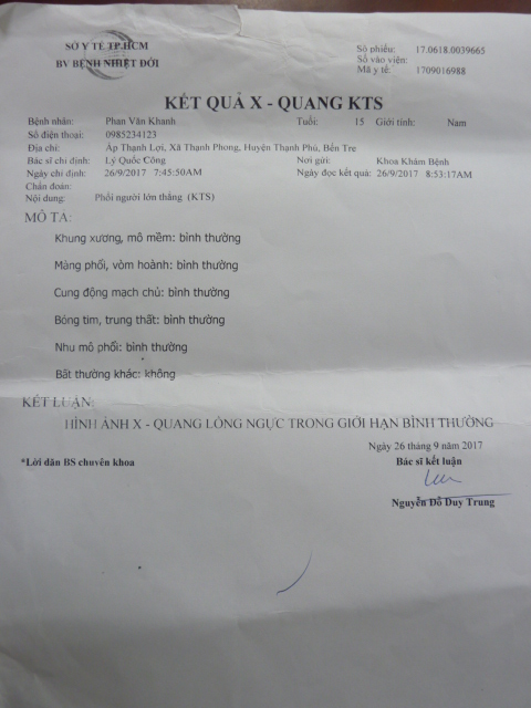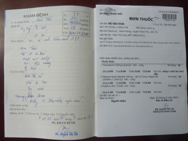 We came to Khanh's house and took him and his mom to Saigon again for a re-examination on 10/26/17.