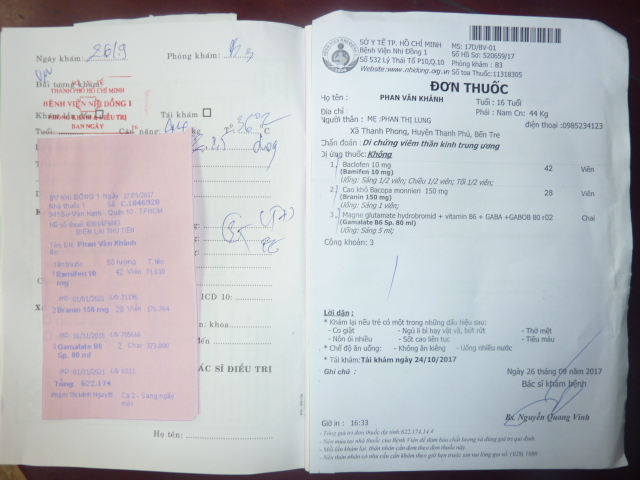 Dưới đây là toa thuốc của bác sĩ cho em Khánh trong tháng 10 và hình ảnh hiện tại của em Khánh:
