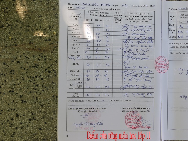 1/ Em Phạm Văn Phong đang là học sinh lớp 11 trường THPT Đoàn Thị Điểm.