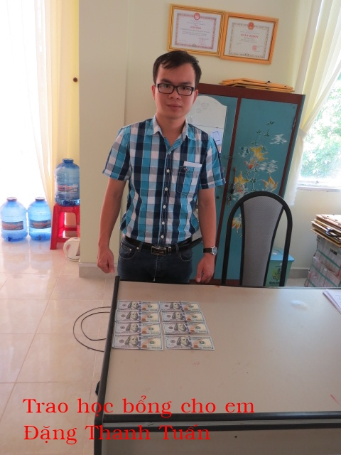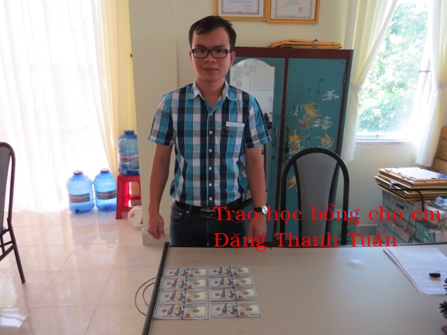 Em Đặng Thanh Tuấn đã được trường đại học bên Thái Lan nhận để tiếp tục chương trình cao học. Em đã có học bổng của đại học Bach Khoa Việt Nam nhưng sô ' tiền cho không đủ .Em đã nhờ hội chúng ta giúp đở thêm để em đủ tiền trang trãi 2 năm đại hoc. Cám ơn các bạn Lâm Thuần Hương, Đỗ Diễm Châu, Quỹ Từ Thiện Của Bà Lê Thị Thao, Thảo Hiền, và Trang Lâm đã giúp đở cho em được tròn mộng ước.