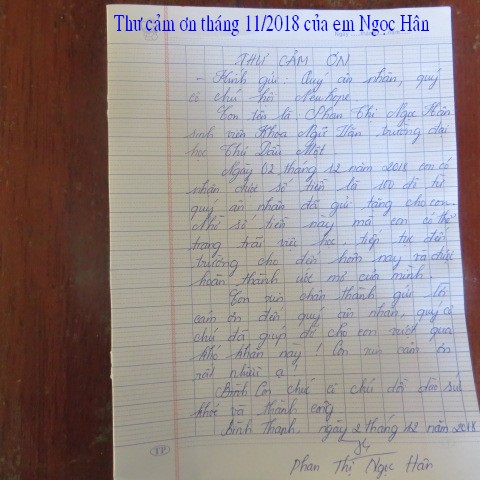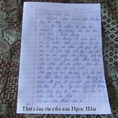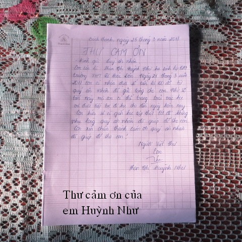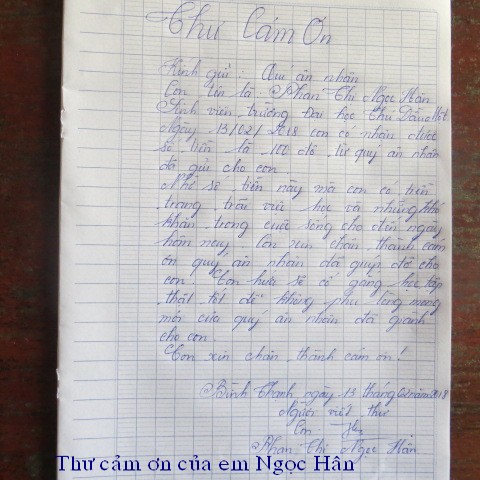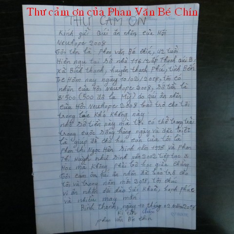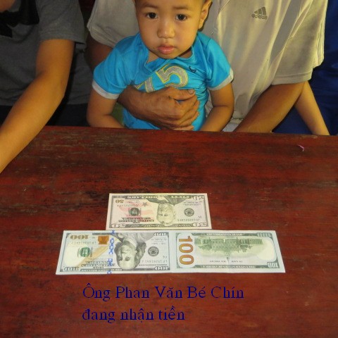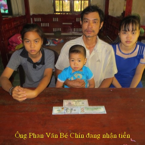 Below are pictures of the family receiving $500, sponsored by our friend, Quang Lang, and thank-you letter from Mr. Phan Van Be Chin: