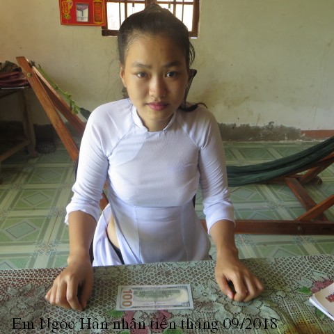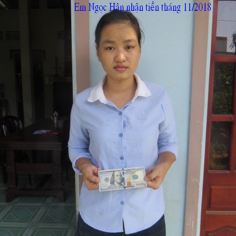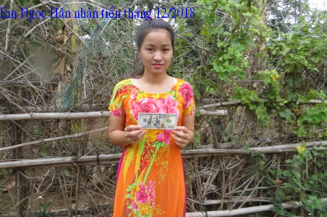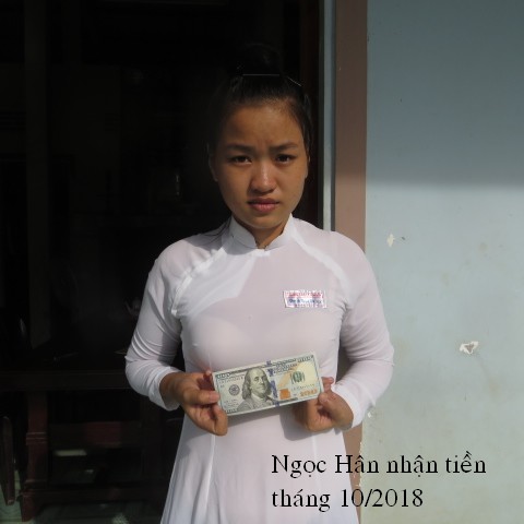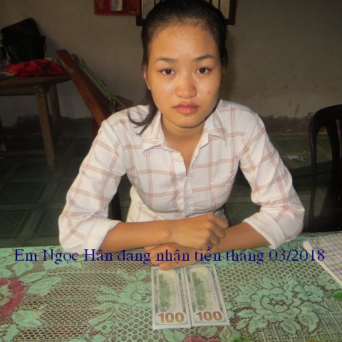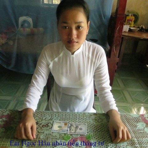 Đây là hình ảnh phát quà trong tháng 3 cho em Phan Thị Ngọc Hân . Em Ngoc Hận đã nhận được $200, số tiền này được bảo trợ bởi bạn Tammy Pham ($100) và hai bạn Lâm Thuần Hương và Ẩn Danh ($100).