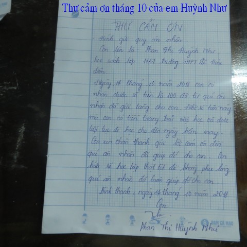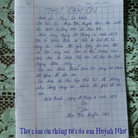 Đây là hình ảnh phát quà trong tháng 3 cho em Phan Huỳnh Như ($100) và thơ cảm ơn của em. Món quà này được bảo trợ bởi hai bạn Lâm Thuần Hương và Ẩn Danh.
