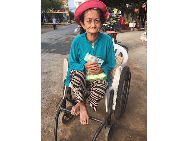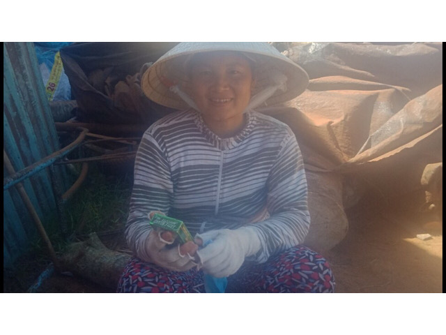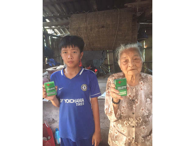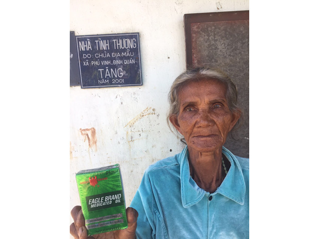 Medicated oil is widely used in the countryside from genenation to generation to fix all kinds of sickness from headache to fever to stomache or even a flu. It is a commodity every household needs and wants to have at home just in case, but not all families can afford to have it. It costs about 5 dollars each bottle, and not only that, people have to travel to the supermarket or pharmacy to buy. Understanding their needs, we try to distribute some every year with priority given to the sickly and the elderly. This year we have many groups distributed them for us. Some gave them to the sickly, some did it on a road trip to poor people holding odd jobs from all walks of life. Some gave to the elderly and the disabled. Some gave to people holding lowest level jobs in small factory. Some gave them to the blind people working at massage shops. Some even went to the hospital to give to poor patients. And also 200 bottles was given to the rice recipients in Dac Lac when we distributed Rice this year, and 108 was given to the elderly/sickly/disabled when we did this project and pictures have been posted in these 2 projects. Below are the pictures of the distribution of medicated oil to the needy in 2019 outside of the Rice and Elderly projects: