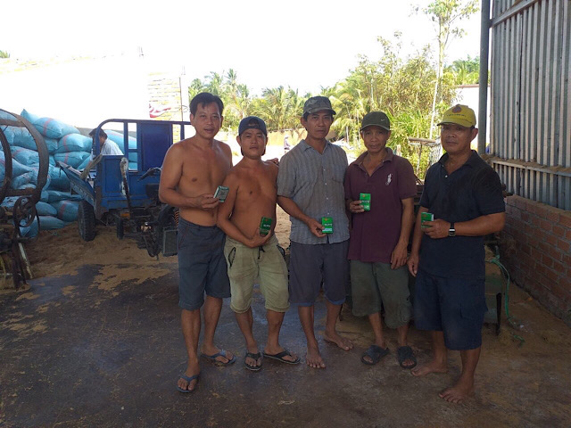 Dầu xanh là một loại dầu dùng để xức khi bị nhức đầu, đau bụng, hay bị cảm cúm mà dân chúng ở quê hay xài. Nó như một loại thuốc trị bá bệnh mà gia đình nào cũng dùng và muốn được có một chai ở trong nhà. Nhưng không phải nhà nào cũng mua nổi vì mua lẻ giá khoảng 5 đô một chai mà phải đi ra chợ khá xa mới có bán. Hiểu được nhu cầu này nên hàng năm hội chúng ta cố gắng để phát ra một số dầu xanh ưu tiên cho các cụ già và người bệnh. Dưới đây là tiêu biểu một số hình ảnh phát dầu xanh đã được thực hiện dùm hội bởi nhiều nhóm và nhiều lần khác nhau. Có nhóm phát cho những người bệnh, có nhóm tặng cho những cụ già, có nhóm tặng cho những người nghèo đang làm việc trên đường phố, có nhóm tặng cho những người mù làm nghề đấp bóp, có nho'm tặng cho những nhân viên làm việc lao động ở các công xưởng. Có nhóm vào tận nhà thương để phát cho bệnh nhân nghèo. Ngoài ra chúng ta đã phát 200 chai cho các gia đình nhận gạo trong chương trình Phát Gạo và 108 chai cho các gia đình nhận quà trong chương trình giúp Người Già/Bệnh/Tàn Tật năm nay. Hình ảnh phát dầu trong 2 chương trình Pháo Gạo và Người Già đã post vào trong 2 chương trình đó rồi. Dưới đây là hình ảnh phát dầu xanh cho người nghèo năm 2019 không có trong 2 chương trình kể trên :