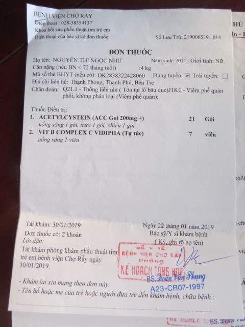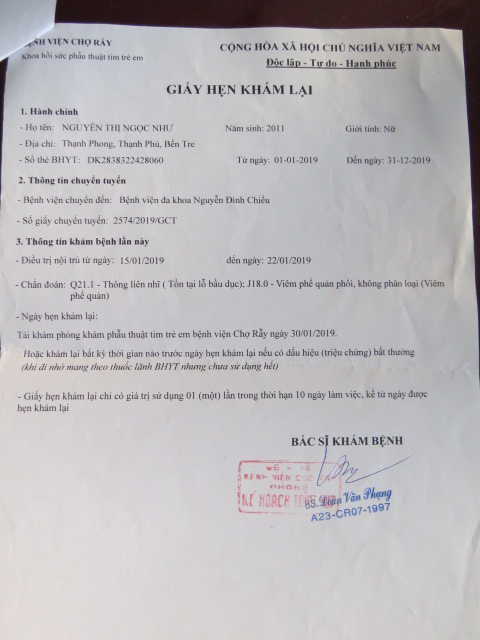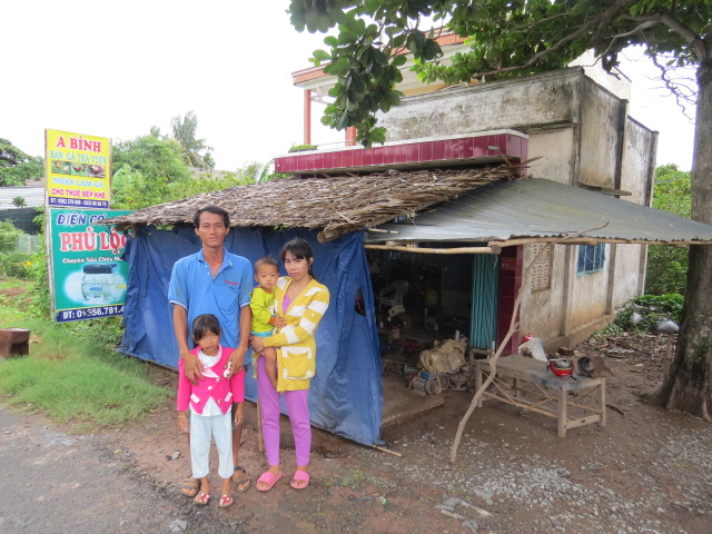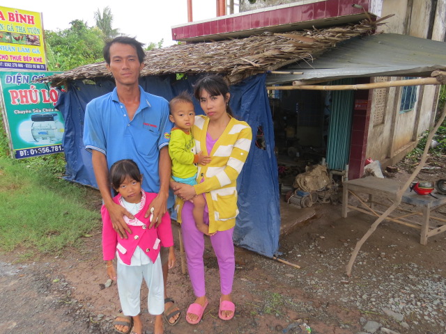 Mr. Nguyen Phu Loi, 29 years old, is currently residing in Khau Bang village, Thanh Phong provine, Thanh Phu district, Ben Tre county. There are 4 members in his household: himself, his wife and 2 children. He rents a Kiosk and performs service for the living. He was able to feed his family. Then, a year ago, he started coughing out blood and it's been this way for a while but he has no money to check it out. The neighbors took pity and have pulled together some money and sent him to the hospital. Currently he has checked in the hospital but the doctors haven't found out what he has yet. He has a daughter, 9 years old, but weighs only 24 lbs. She was born with heart disease. They are in need of help. They have no house and no land. They currently live with relatives.