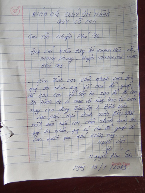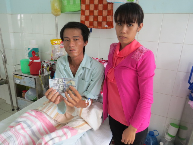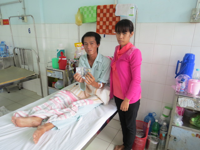 Dưới đây là hình ảnh gia đình ông Nguyễn Phú Lợi và hình ông ở bệnh viện . Chúng tôi đã ghé thăm và trao tiền cho ông ($200):