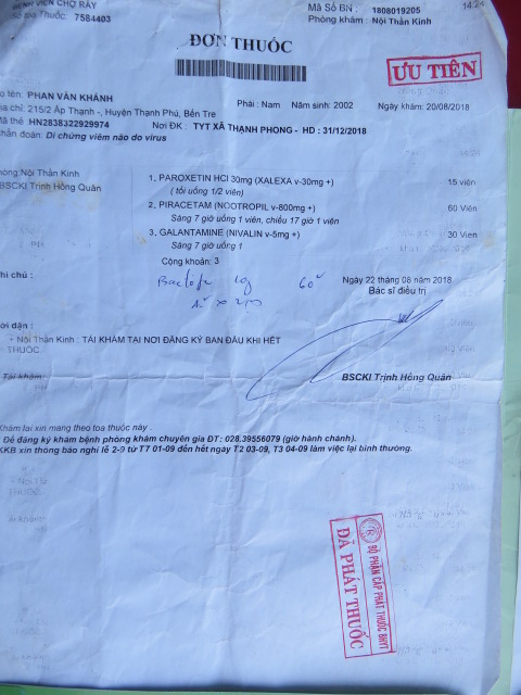 Below are the medical documents and prescription for Phan Van Khánh's treatment in March: