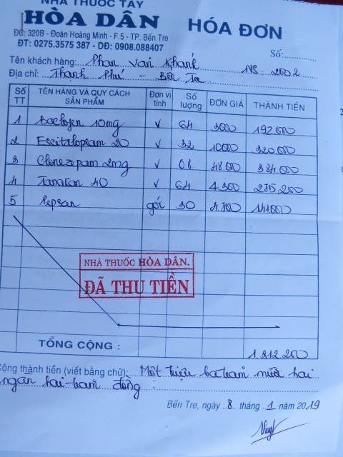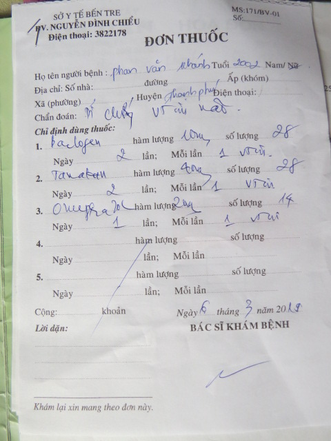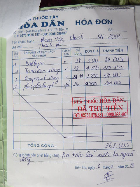 Dưới đây là biên nhận đi bác sĩ và toa thuốc em Khánh đã đi chửa trị vào tháng 3: