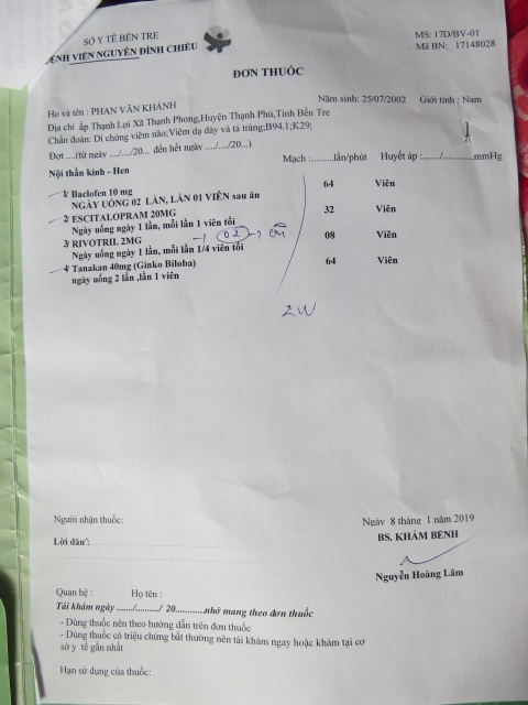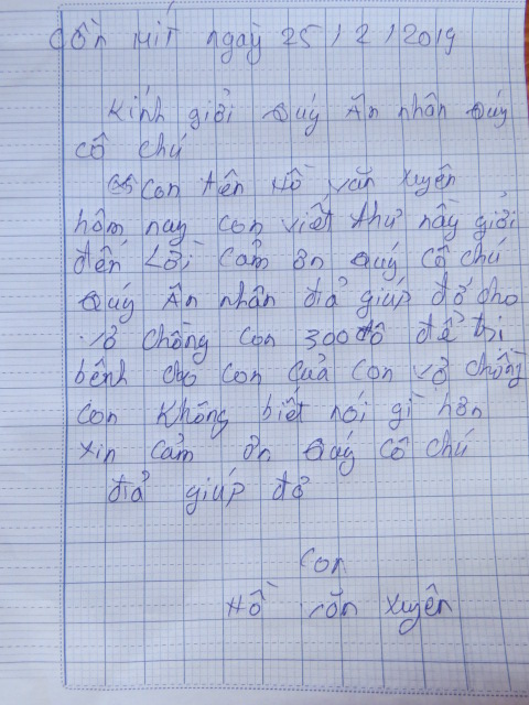 Dưới đây là hình ảnh trao tiền, thơ cảm ơn, và biên lai thuốc mà em đã được cho trong lần khám vào ngày 31 tháng 12, 2018 và 8 tháng 1, 2019: