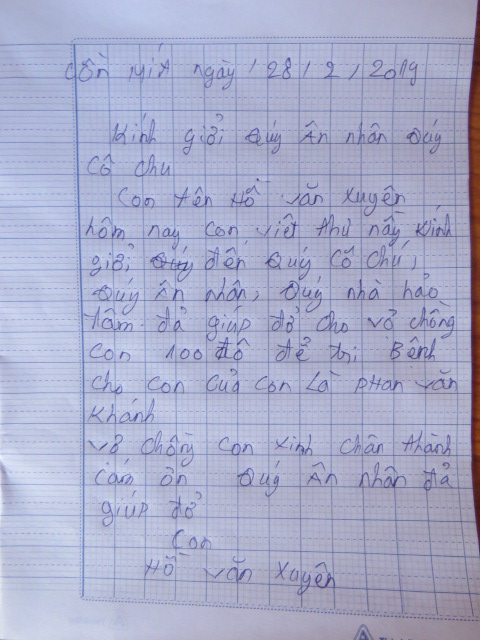On 02/04/18, we received $100 from Ms. Heather Huong Lam to help his family.