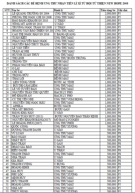 Đây là chương trình giúp cho hơn 100 cháu bé đang bị bệnh ung thư ở bệnh viện Ung Bướu. Vì các cháu còn rất nhỏ và có nhiều cháu bị khuyết tật trên người do bệnh gây ra nên chúng ta không đăng hết tất cả hình như một chương trình bình thường mà chỉ đăng tiêu biểu vài tấm hình để các bạn thấy hoàn cảnh sống ở nhà thương của các cháu, và những cực nhọc mà bậc làm cha mẹ này phải trãi qua để lo cho các con của mình. Mong các bạn xem rồi sẽ hiểu và thương và khi có dịp giúp thì sẽ nhớ đến họ. Họ rất nghèo nên tiền là món quà thực tế nhất trong hoàn cảnh này.