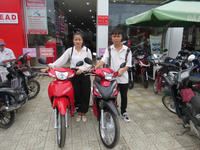 Con cảm ơn quý cô chú rất nhiều đã tặng chiếc xe máy này cho con.