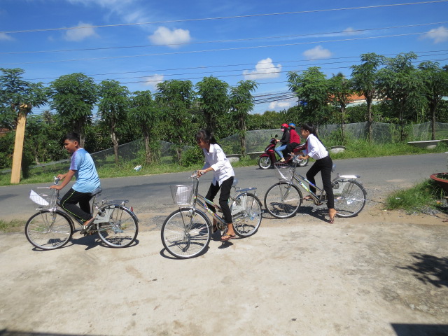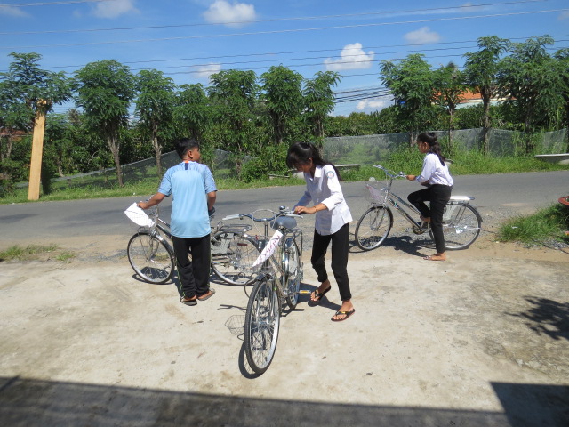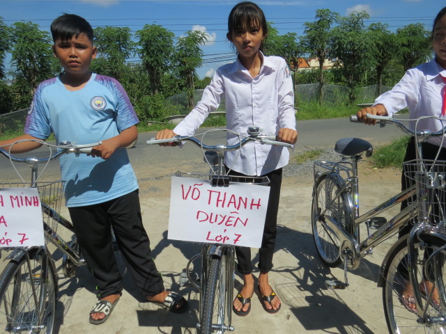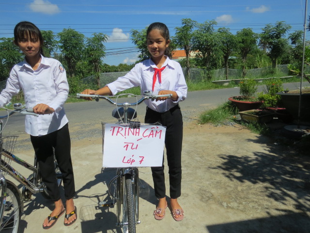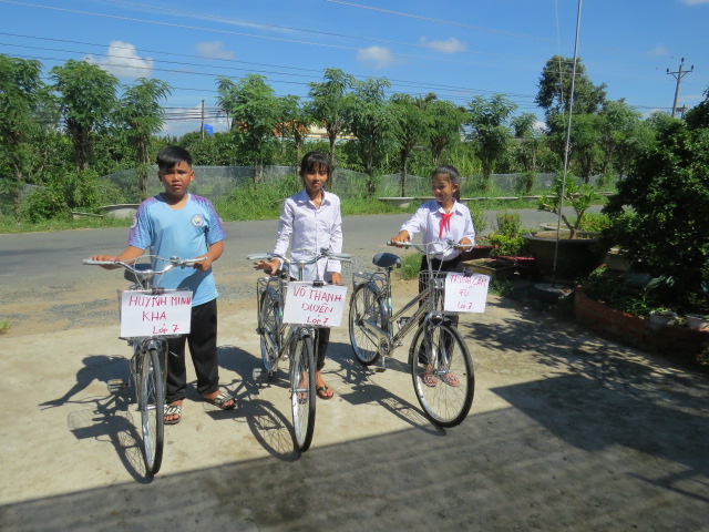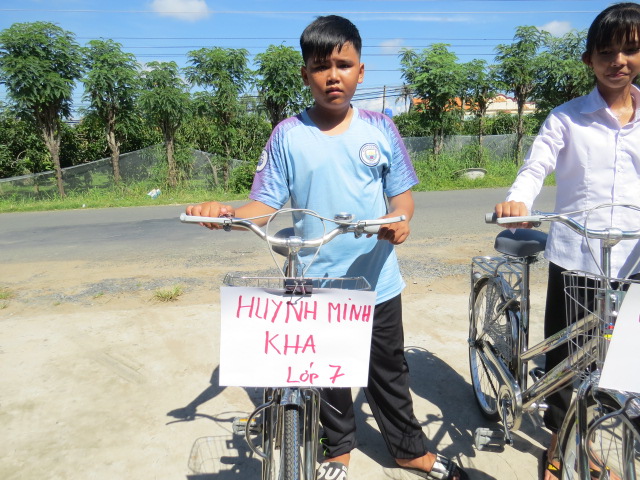 Huynh Minh Kha, 7th grade, resides at Con Mit hamlet, Thanh Phong village, Thanh Phu district, Ben Tre providence. His mother, Bui Thi Be, is 35 years raising 2 children; his father left them. Their place has no space for farming. His mother works whatever job is available. He does not have any transportation to school and has to walk 8km (4.6 miles) to school.