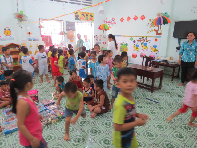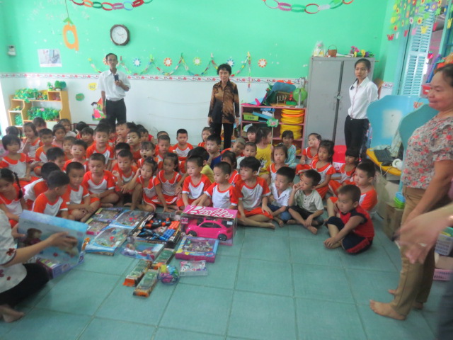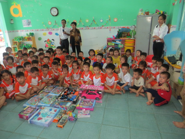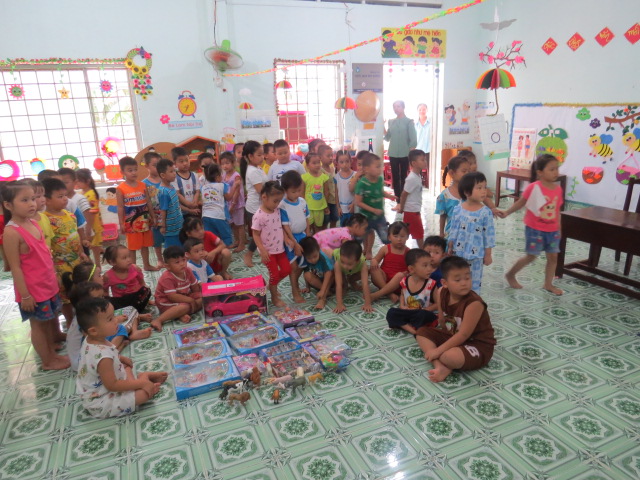 We received a number of toys to be handed out this year, but they are not enough for every child in a school, so we decided to donate to 3 kindergarten schools so the toys stay in the classes and the children can share together. There were no words that could fully describe the surprise and joy of the students upon receiving these toys. Thank you our donors for making this project possible. Please scroll down to view the distribution pictures at Hòa Lợi, Hưng Khánh Trung A, and Thới Thạnh kindergarten schools.