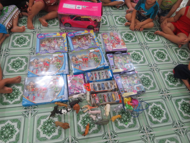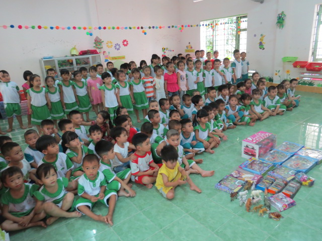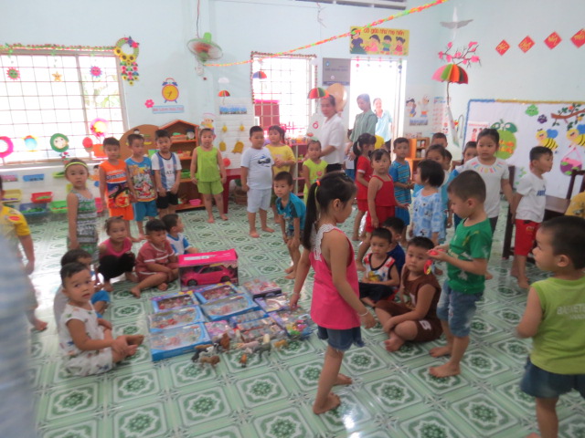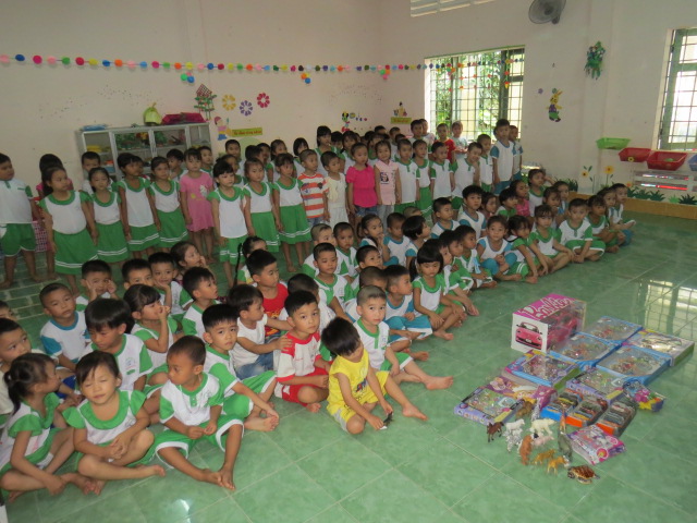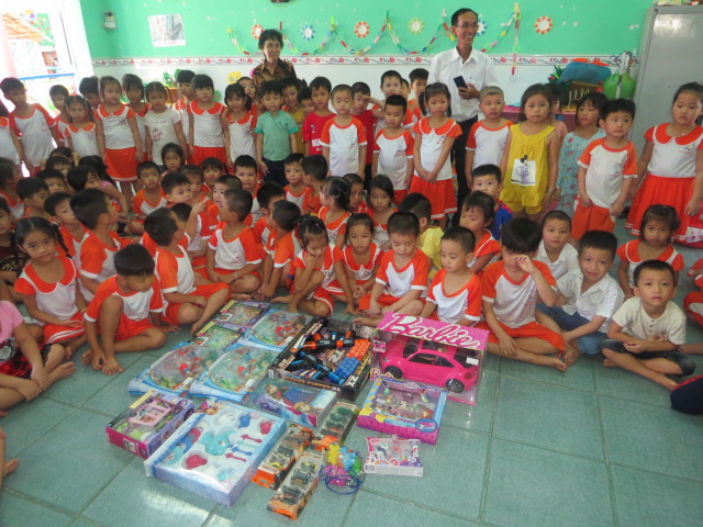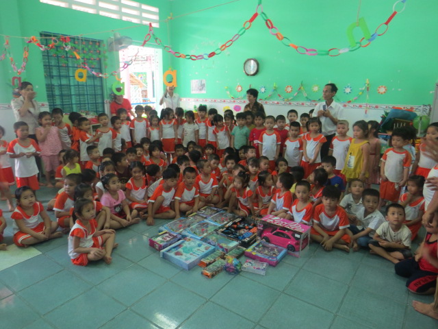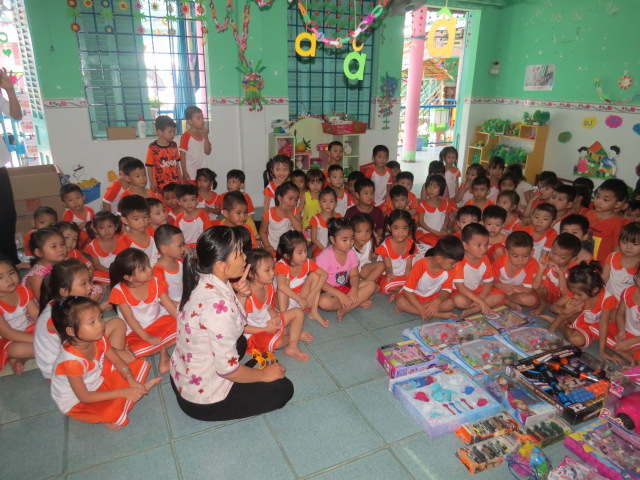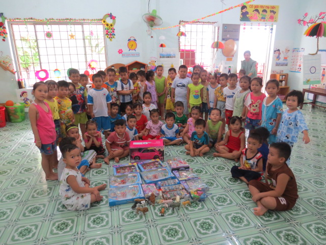 Chúng tôi có một số quà để tặng cho các em nhưng không đủ để cho mỗi em đem về một món, vì thế chúng tôi đã quyết định cho 3 trường mẫu giáo để những món quà này được giữ trong lớp học và mỗi ngày các em có thể chơi chung với nhau. Có hơn 200 em sẽ cùng chia xẻ những món quà này. Buổi lễ phát quà đã diển ra trong trong sự ngạc nhiên và mừng rỡ của các em. Mời các bạn xem những tấm hình từ buổi phát quà dưới đây để cùng vui, cùng thưởng thức cái hạnh phúc ngọt ngào khi trao tặng hạnh phúc cho người khác. Dưới đây là hình ảnh phát đồ chơi cho 3 trường mẫu giáo giáo Hòa Lợi, Hưng Khánh Trung A, và Thới Thạnh:
