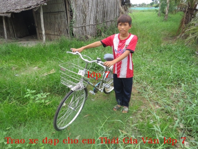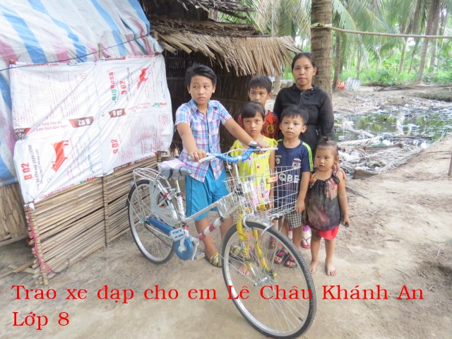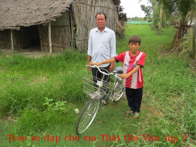 Dưới đây là hình phát xe đạp cho 3 em học sinh nghèo: