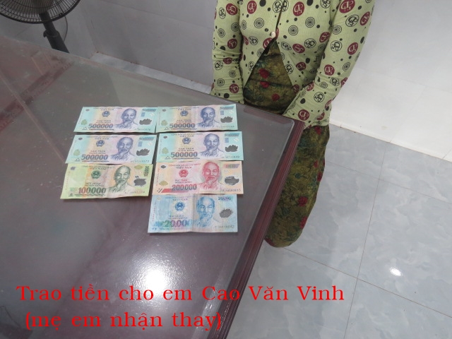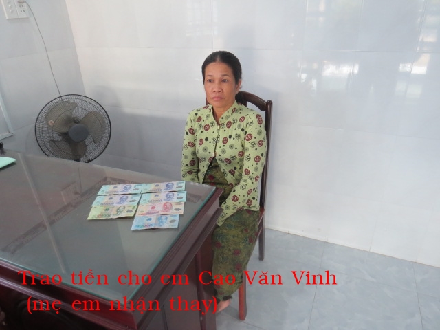 05/09/21 Cô Sương Phạm và gia đình có nhã ý giúp em Cao Văn Vinh $100 để cho em sinh hoạt vì cảm thương hoàn cảnh khó khăn của em. Dưới đây là hình mẹ em đã đại diện nhận tiền vì lúc này em vẫn còn đang học chưa về và lá thơ của em tâm sự về hoàn cảnh của mình.