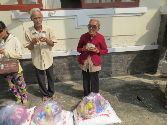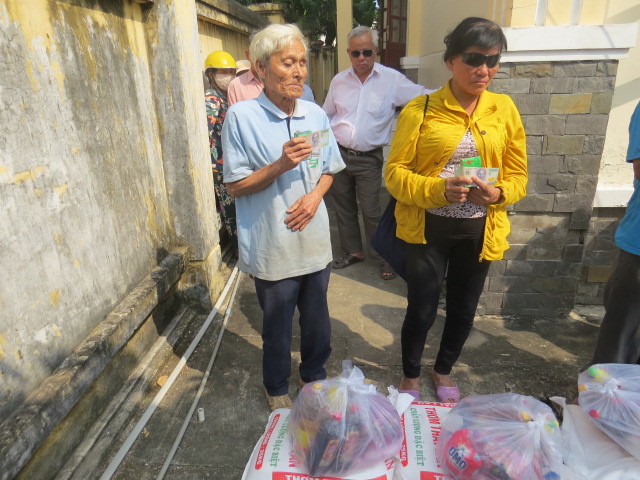 Nguyen Thi Lang, born in 1937, resides at Phuoc Ngai hamlet, Ba Tri district, Ben Tre province. She was born blind. Her son, who is also blind, received the gifts on her behalf.