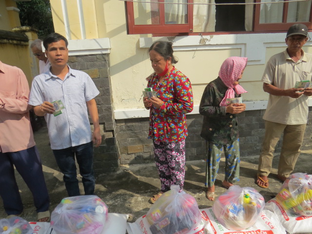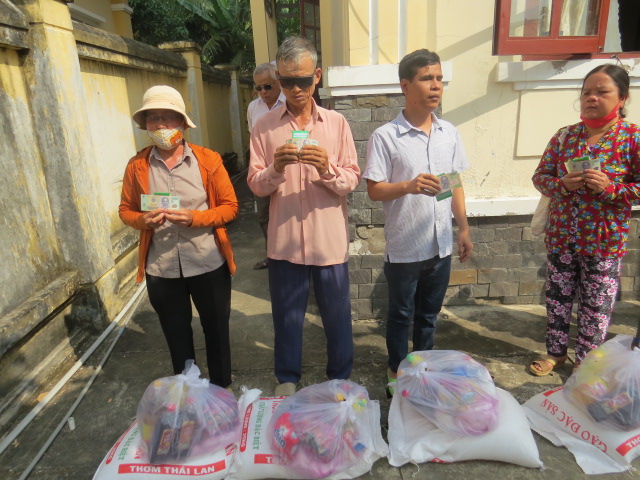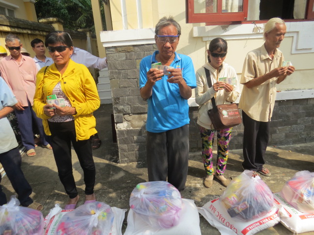 Tran Thi Han, born in 1960, resides at My Hoa hamlet, Ba Tri district, Ben Tre province. She was born blind. She did not arrive at the distribution in time, so the blind organization received the gift on her behalf.