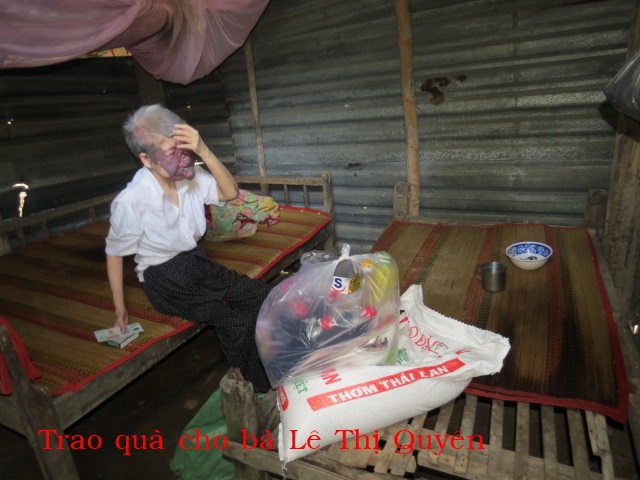 Le Thi Quen, born in 1960, resides at Second hamlet, Thoi Lai village, Binh Dai district, Ben Tre province. She was blind 10 years ago. She lives with her daughter, who has a mild mental illness. Her daughter sells lottery tickets to support themselves.