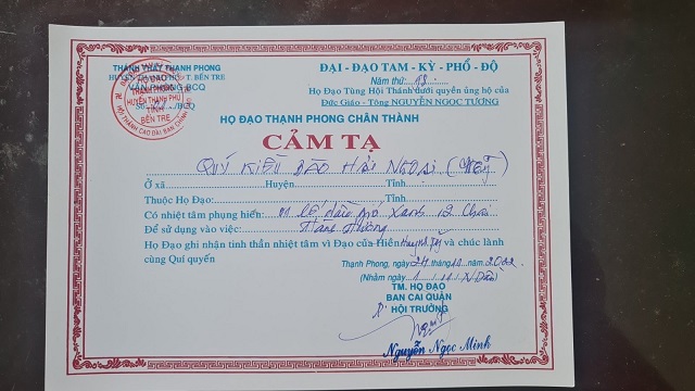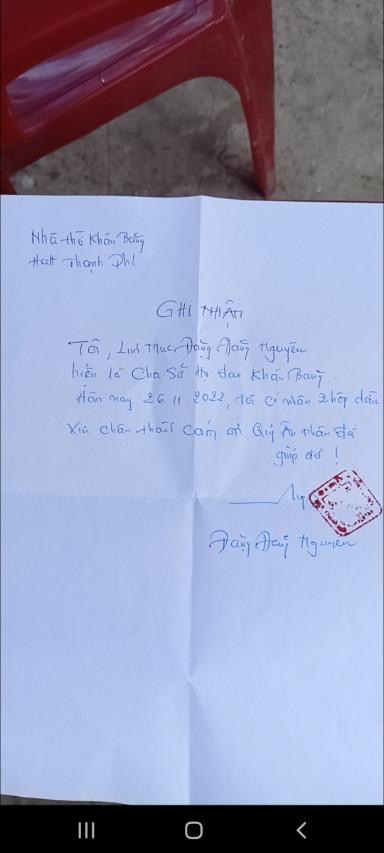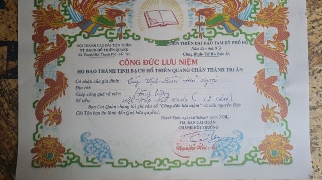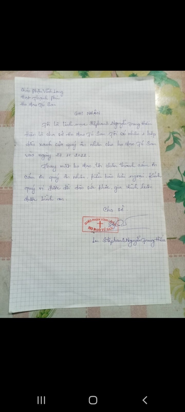 Dưới đây là cảnh trao thuốc và biên nhận của dầu xanh. Dầu xanh được tặng ngày khác và lúc đó staff không có phương tiện chụp hình nên chùa đưa biên nhận.
