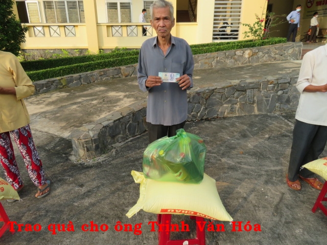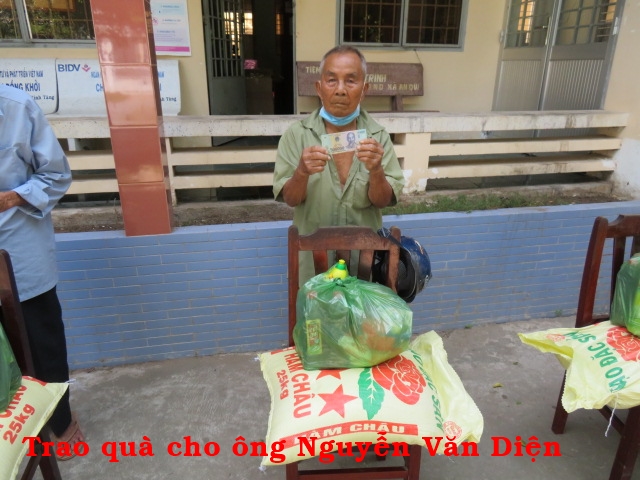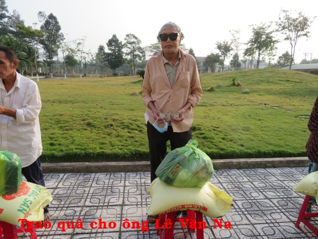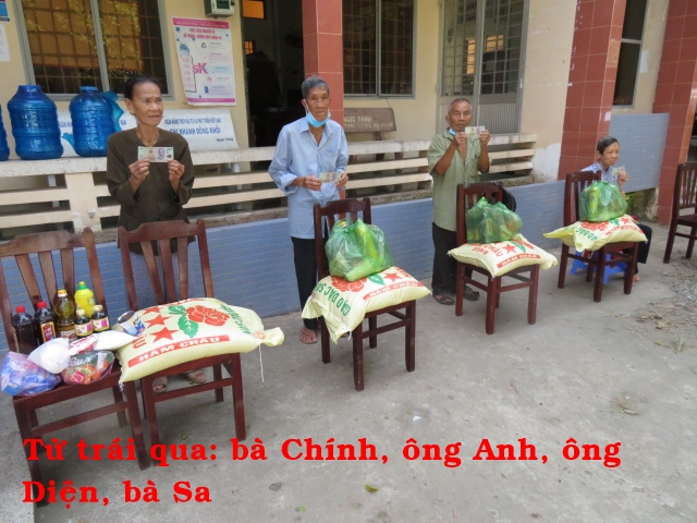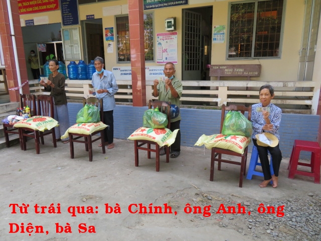 Đây là cuộc phát quà cho 37 gia đình có hoàn cảnh khó khăn. Trong số này có 20 gia đình người mù và 17 gia đình nạn nhân của dịch Covid. Trong số 20 người mù có vài người đã từng bị Covid. Trong số 17 người không mù thì có nhiều người đã từng bị Covid hay gia đình có người bị Covid và phần đông họ đều lớn tuổi. Những người được chọn gồm từ hơn 10 xã ở 2 quận Mõ Cày Bắc và Thạnh Phú. Những ai còn ngồi xe được thì chúng ta nhờ thiện nguyện viên chở tới địa điểm phát, còn không đi nổi thì chúng ta đến tận nhà để phát.