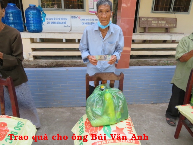 This is a rice/food/cash distribution to 37 families who are poverty-stricken. Amongst these,there were 20 blind families. Many of them are victims of Covid-19 and are still recovering. The recipients were chosen from over 10 villages in Thanh Phu and Mo Cay Bac districts.