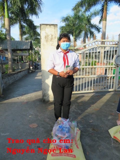 Nguyen Ngoc Lan, 14 years old, lives in Phu Khuong ward, Ben Tre city, Ben Tre province. There are 4 people in her family: her father, her mother, herself and a younger brother. Every day her parents go to harvest coconuts for hire.