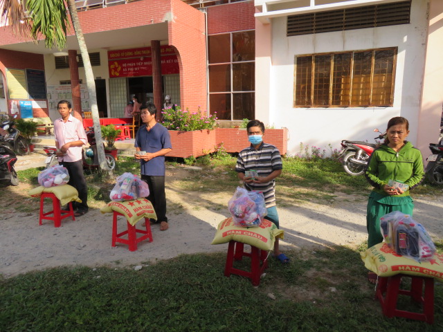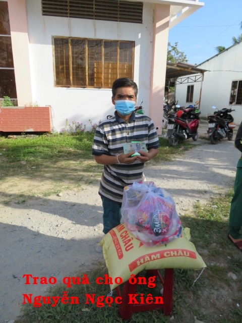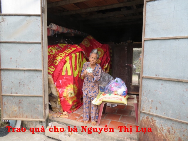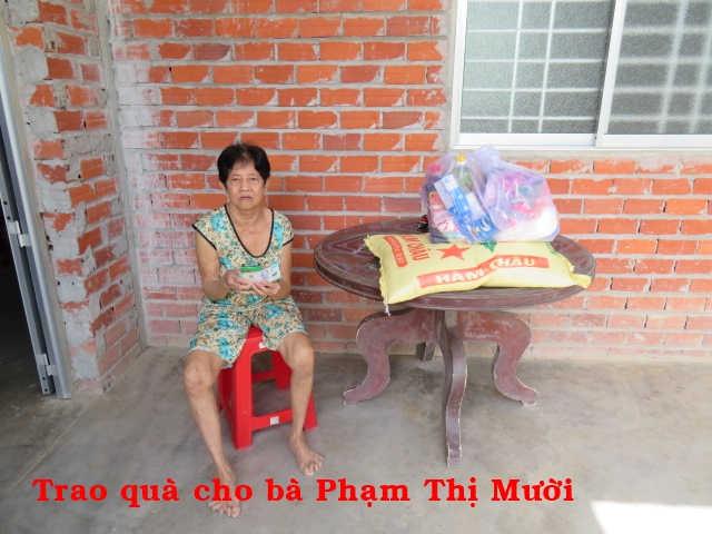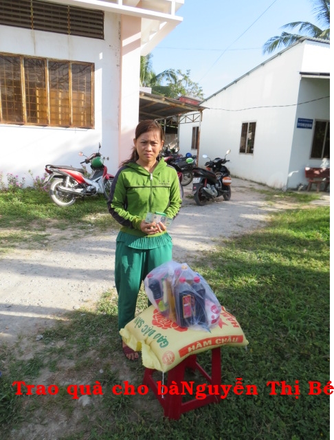 Mrs. Nguyen Thi Be, 80 years old, had a stroke and is bed ridden. Her relative received the gifts on her behalf. She lives in Phu Thinh hamlet, Phu My commune, Mo Cay Bac district, Ben Tre province.