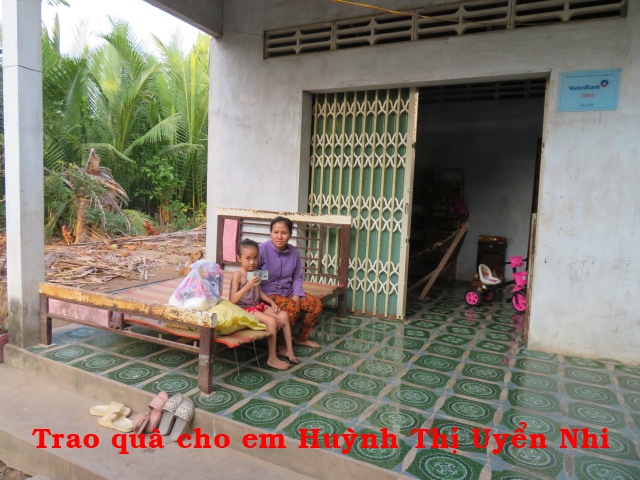 Huynh Thi Uyen Nhi, 10 years old, living in Thanh My hamlet, My An commune, Thanh Phu district, Ben Tre province. She was born with a disability, cerebral palsy. Her father left her and now she lives with her mother and a younger brother.