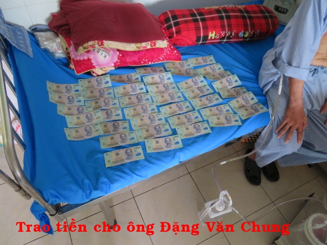 Dưới đây là hình ảnh trao 20 triệu đồng (850 US dollars) cho ông Đặng Văn Chung ở nhà thương: