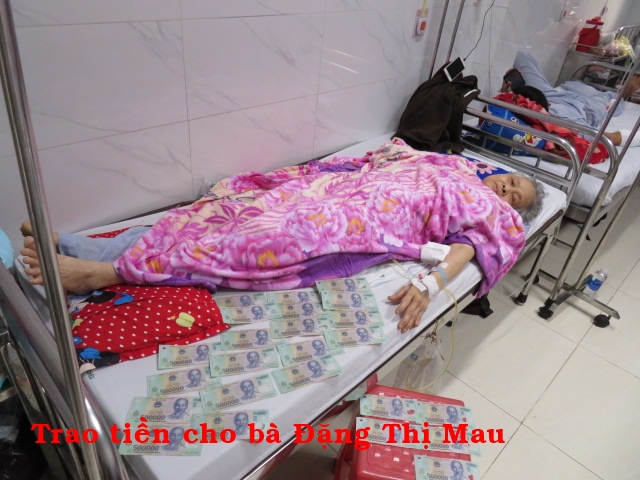 -Lần thứ nhì, chúng ta trao cho bà 8 triệu đồng VN tại nhà bà tạm trú sau khi mổ xong.