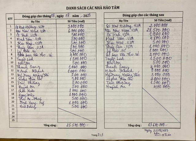 a. / Ông bà Nguyễn Ngọc Thoại và Lý Thanh Phụng tài trợ 48.000.000₫, xây dựng NTT 07 cho gia đình ÔB Đặng văn Tùng & Nguyễn thị Trang ở Vĩnh Châu, Sóc Trăng;