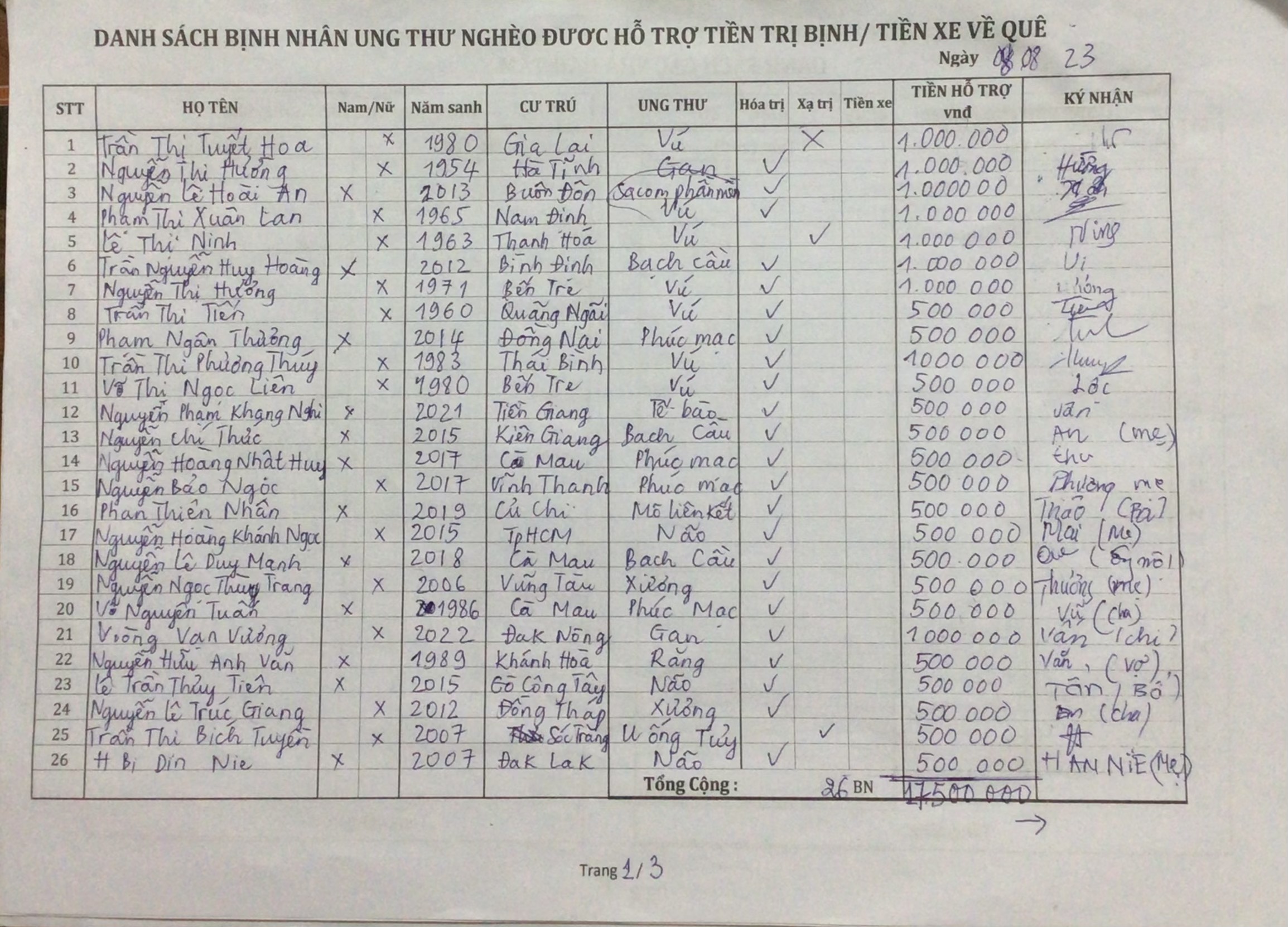 1./ Hỗ trợ 25.500.000₫ tiền trị bịnh và tặng bánh & yaourt cho 37 BNUT ngày 08/08
