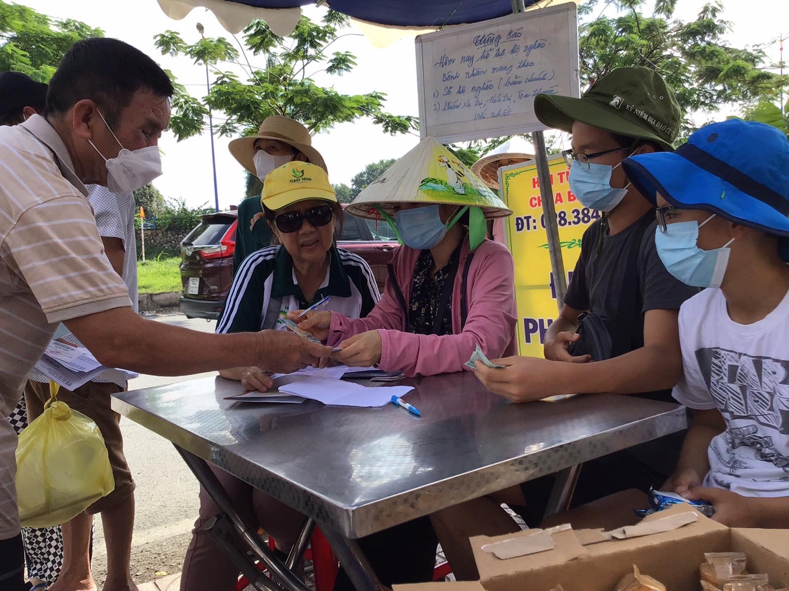 Lần tháng 8/23 này, có hai thiếu niên tặng yaourt và giúp trao tiền, yaourt & bánh cho BN ( bánh được chị Định Yang -USA tặng).