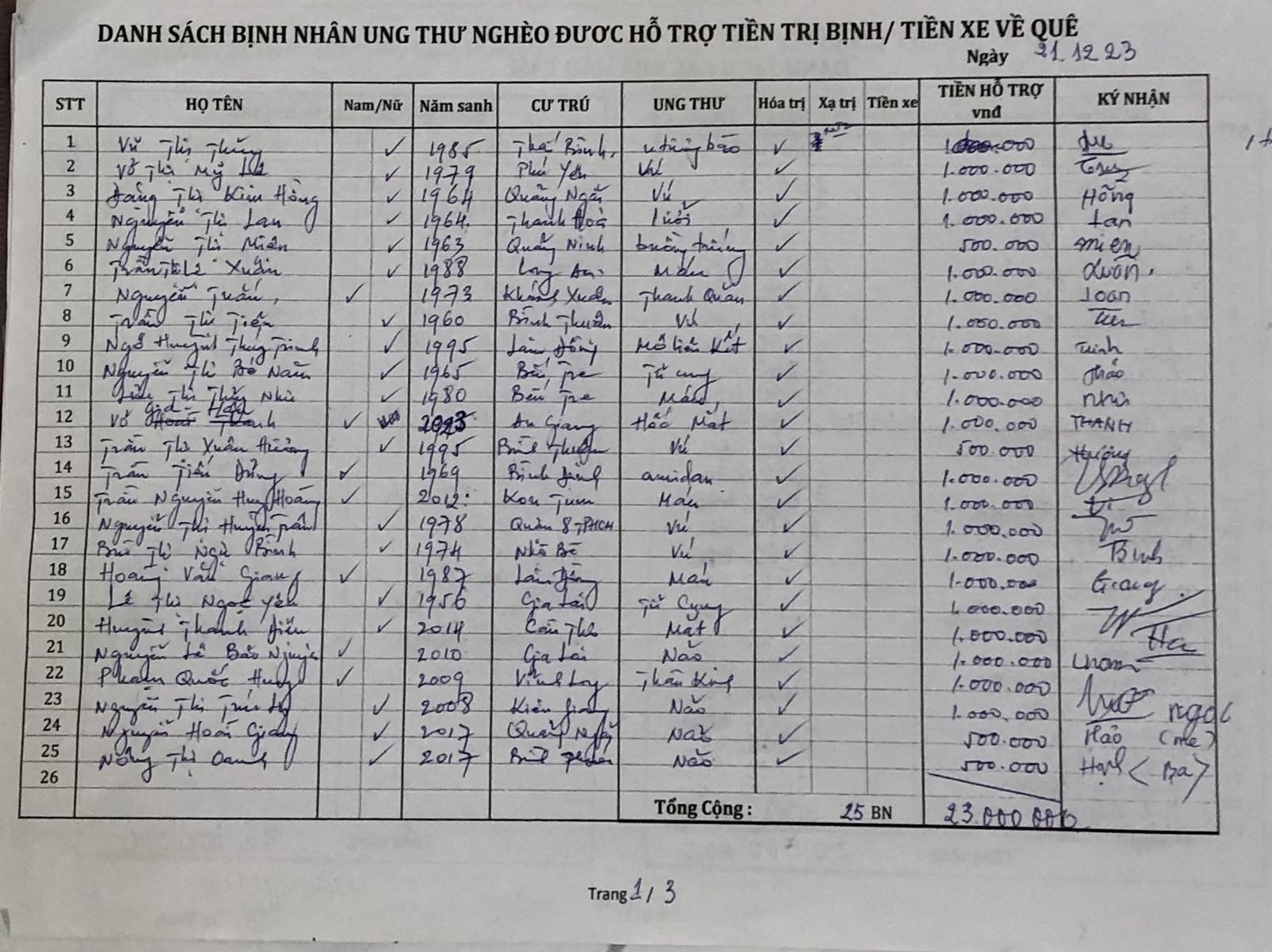 Được giúp tiền trị bịnh trong tháng 12/23 có đến 21 bịnh nhi (52,5%) sinh 2017 đến 2023; và các cháu đa phần bị ung thư máu (39%) và não (39%).!!