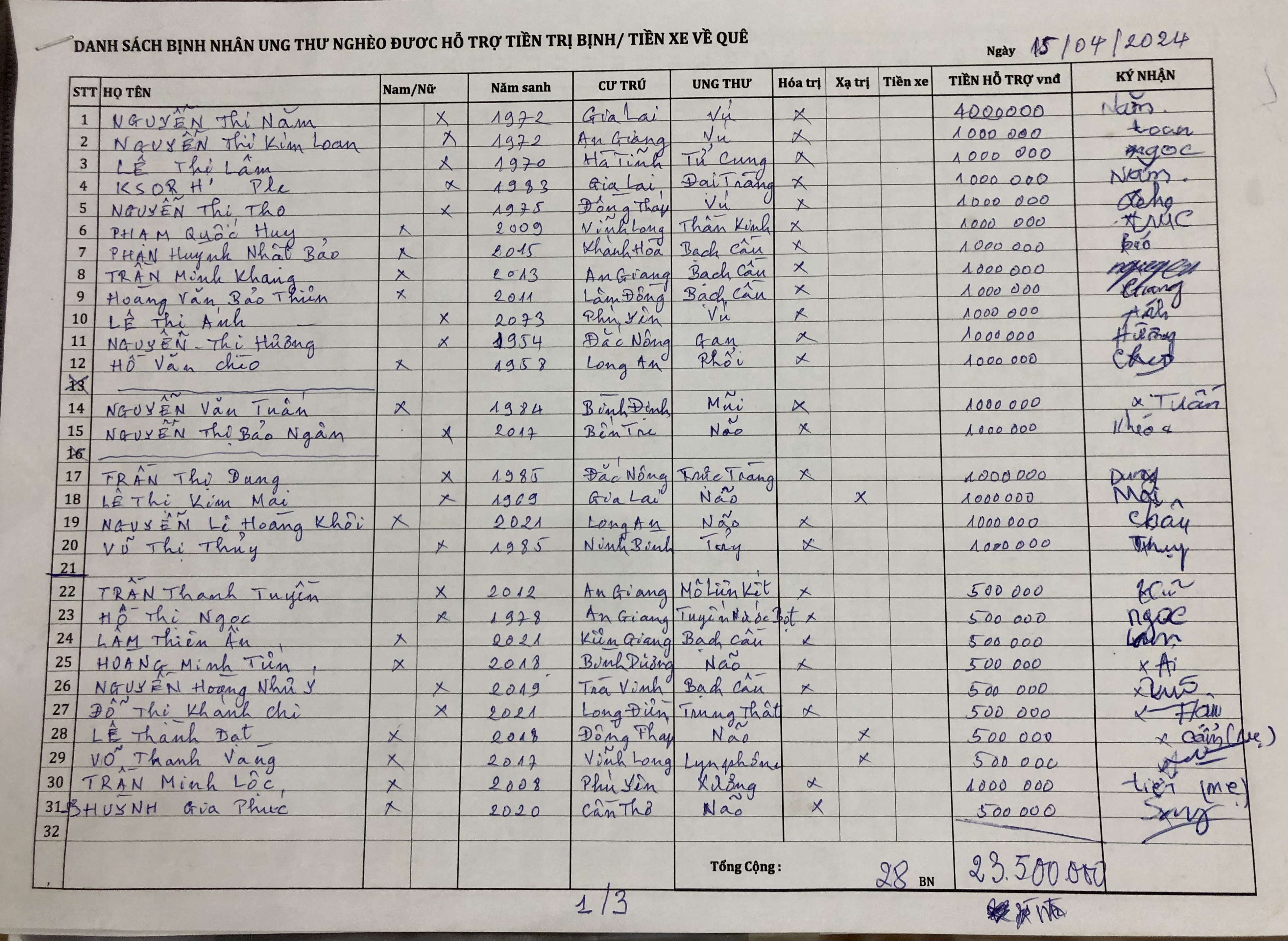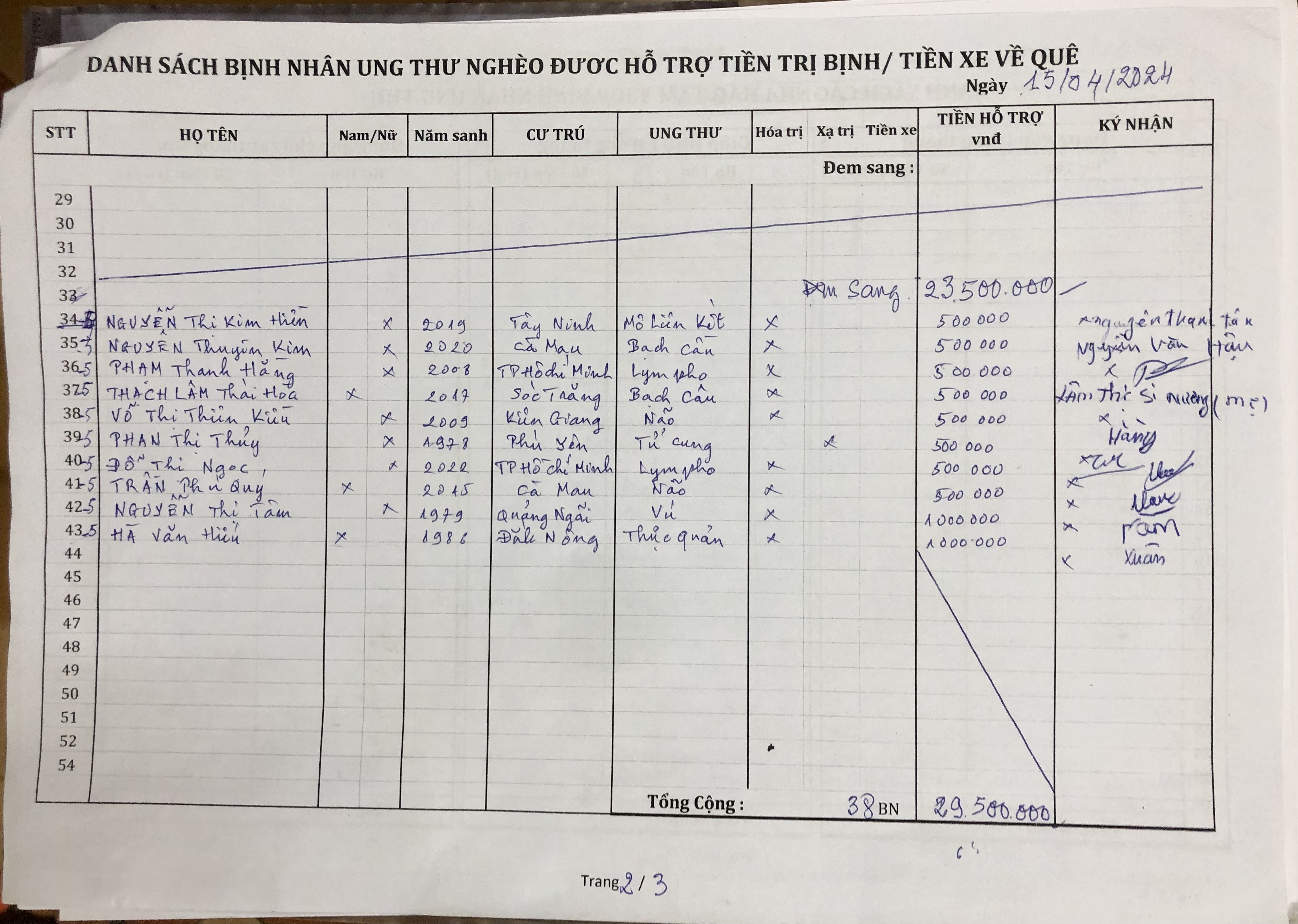 Đặc biệt cảm ơn 4 anh chị ở Pháp, Mỹ và Úc : anh Dzực, chị Định Yang, chị Hoa Diệp cùng OX Harris đã dành chút thời gian ít ỏi của mình tại VN, không ngại ngồi bên lề đường dưới cái nắng gay gắt tháng 4 tại Thủ Đức, cùng tham gia buổi hỗ trợ tiền trị bịnh & tặng quà cho gần 80 BN đang điều trị nội trú tại BVUB cơ sở 2, tp HCM ngày 15/4/24.