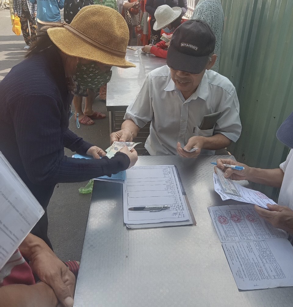 3. Quà người già : Tặng 200.000₫ cho bà Cúc, một người khất thực ( hình 12).