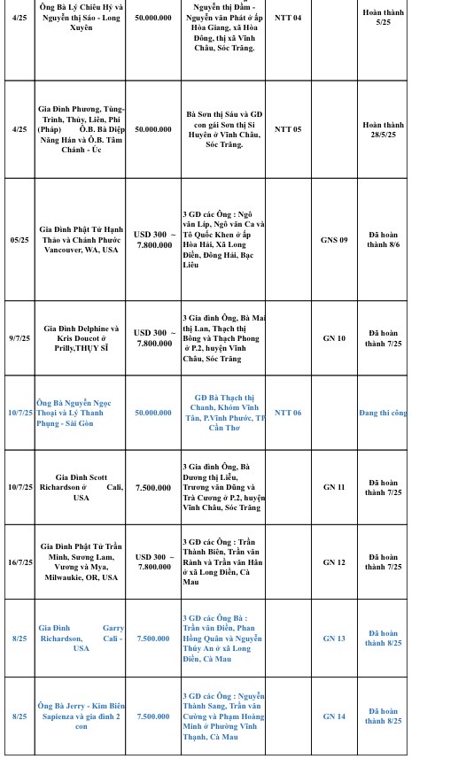 2./ Hoàn thành : 2 GN được tài trợ trong tháng 8