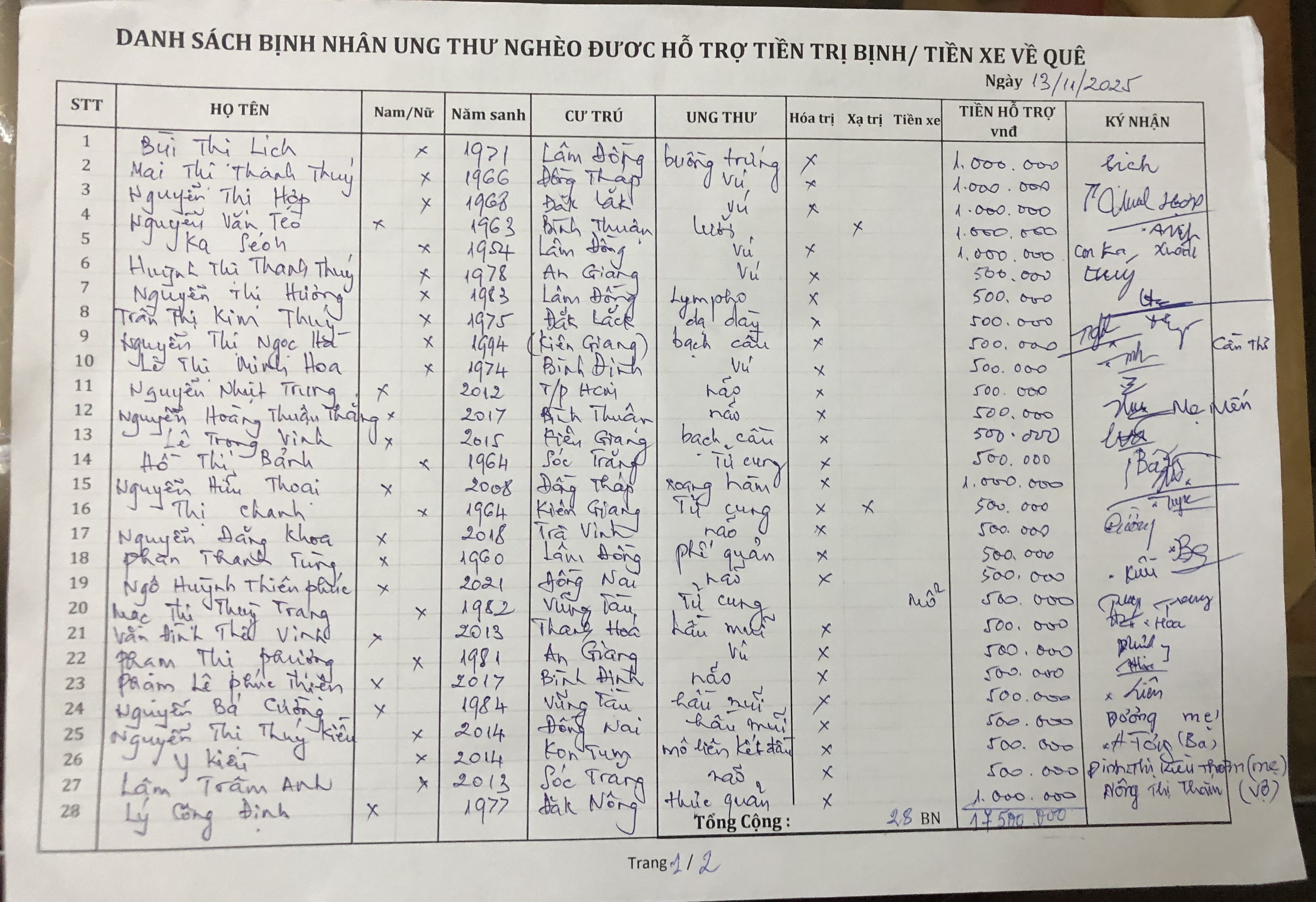 - Qua nhóm sc Tâm An Hạnh, chùa Bửu Long, Thủ Đức; 8 triệu;