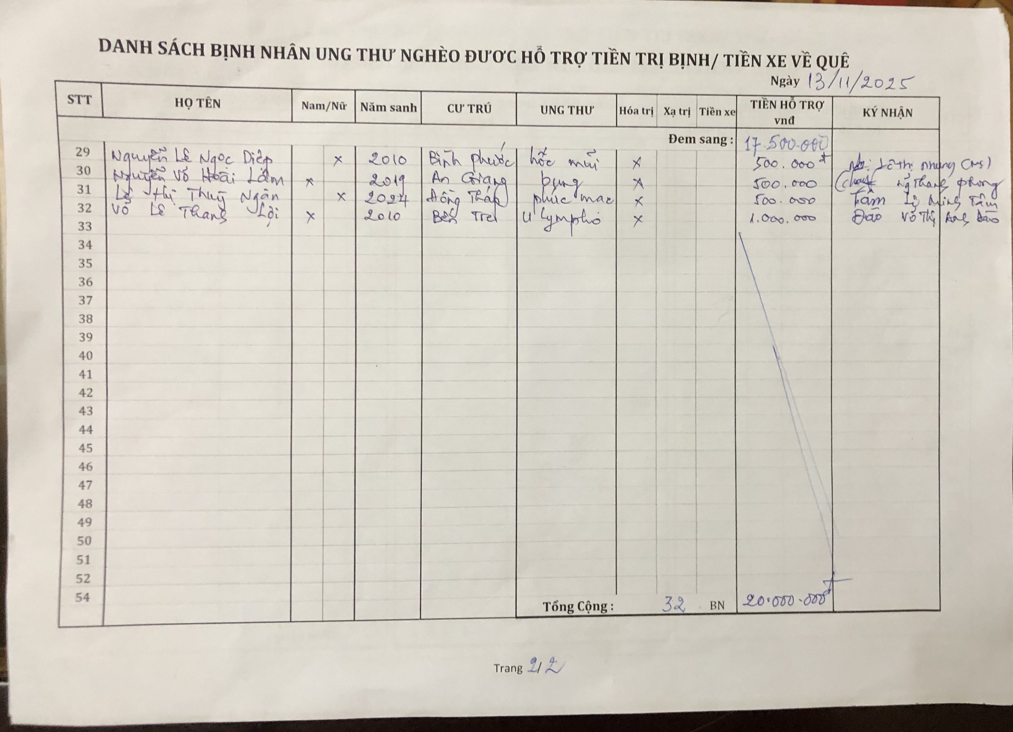 1.2 Nha Trang: qua nhóm Rice for Hunger : 14 triệu.