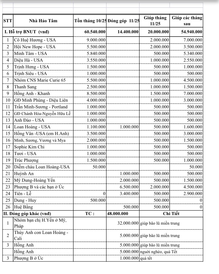 - Qua sc Nhật Tuệ - ni viện Diệu Đức, Tp Huế : 10 triệu;