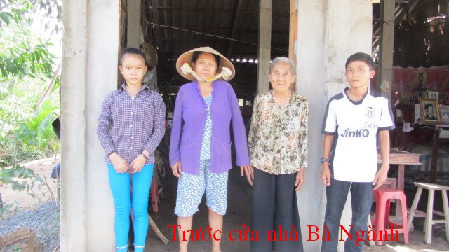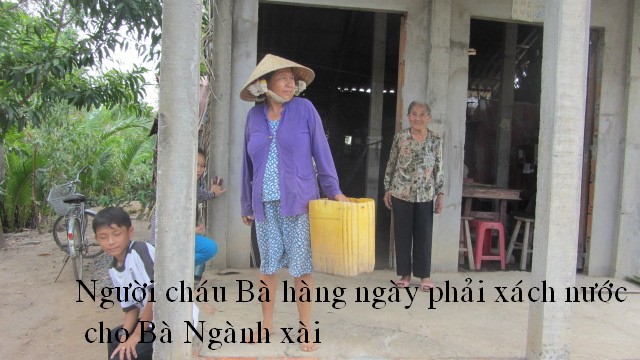 Bà Huỳnh Thị Ngành 90 tuổi, Địa chỉ ấp An Hòa, xã An Thuận, huyện Thạnh Phú, tỉnh Bến Tre. Bà sống với 2 cháu nội còn đang tuổi học sinh. Nhà Bà nghèo không có tiền xây nổi cái giếng, Hàng ngày người cháu hàng xóm của bà phải đi xách từng thùng nước ở ngoài sông cho bà xài rất vất vả.
