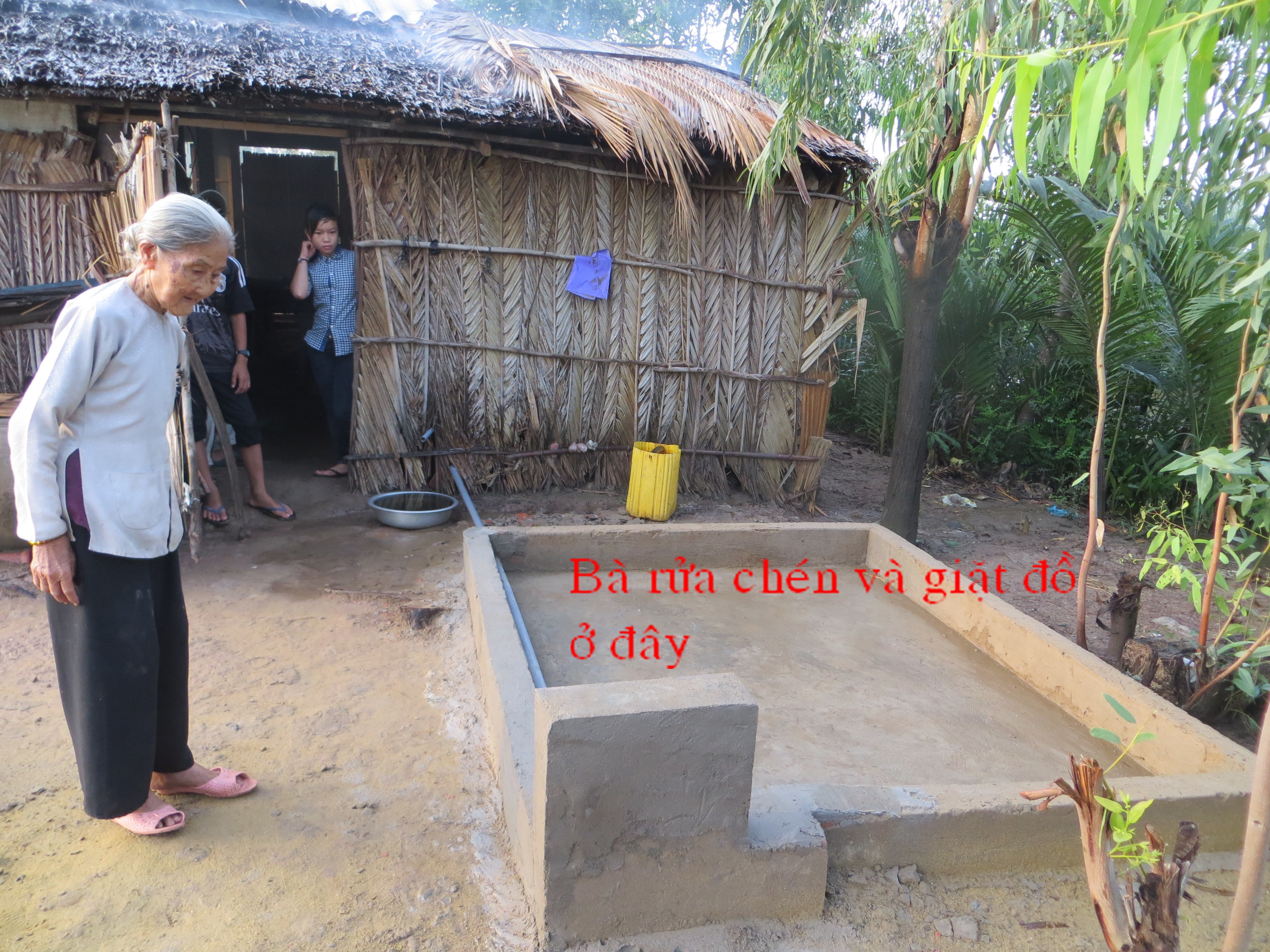 Mrs. Huynh Thi Nganh, age 90, of An Hoa Hamlet, An Thuan Village, Thanh Phu District, Ben Tre Province is living with her 2 grandchildren who go to school. They cannot afford a well, so her neighbour has to help bringing water from the river which is very hard.