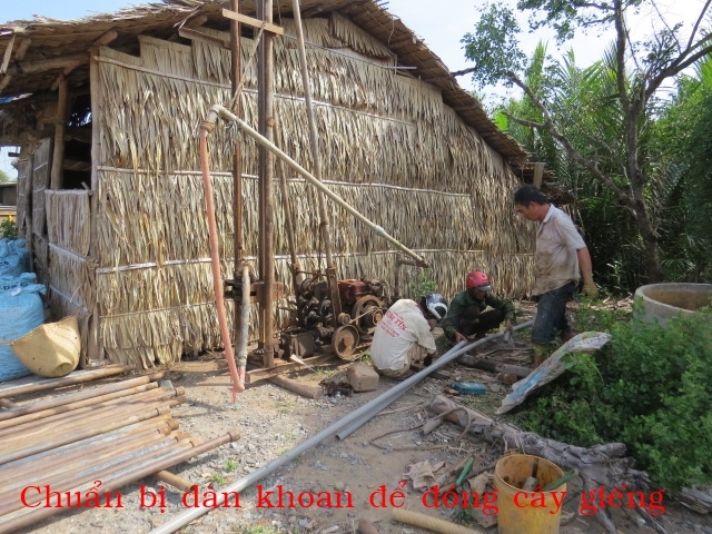 Cả 2 gia đình ở Bồn Bồn xã Thạnh Phong huyện Thạnh Phú tỉnh Bến Tre. Vì không có tiền đóng nổi cây giếng nên phải đi xin của nhà hàng xóm về xài.