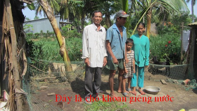 Ông Nguyễn Hữu Thọ, 38 tuổi, vợ Bà Trần Thị Nguyên 36 tuổi có bé trai 5 tuổi đang học Mẫu Giáo. Ông Thọ đang ở chung với ba Ông là Ông Nguyễn Văn Tát 68 tuổi mất sức lao động. Vợ chồng Ông Thọ không nghề nghiệp lại bị bệnh chậm tiến nên ít ai thuê mướn làm việc. Thu nhâp không ổn định. Nhà Ông thì không có khả năng làm cái giếng nước.