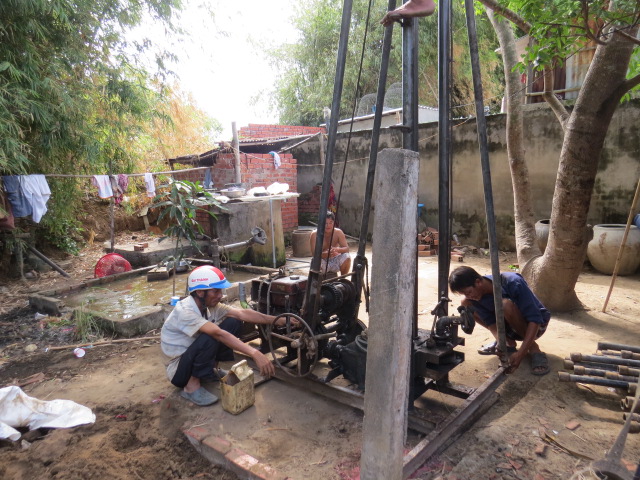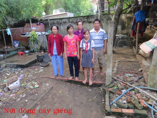 Mr. Tran Van Man, age 48, of Hamlet 4, An Thuan Village,Thanh Phu District, Ben Tre Province is living with his mother, his wife and their 3 children, one of whom is working in Binh Duong, away from home. They have no land to toil on. Every day, he works as a porter, carrying pig food while his wife sells fruits for students in a nearby school. Their earning is just enough for the family to get by every day. For water to use in the house, they have to ask their neighbour for and then carry it from a far away place.