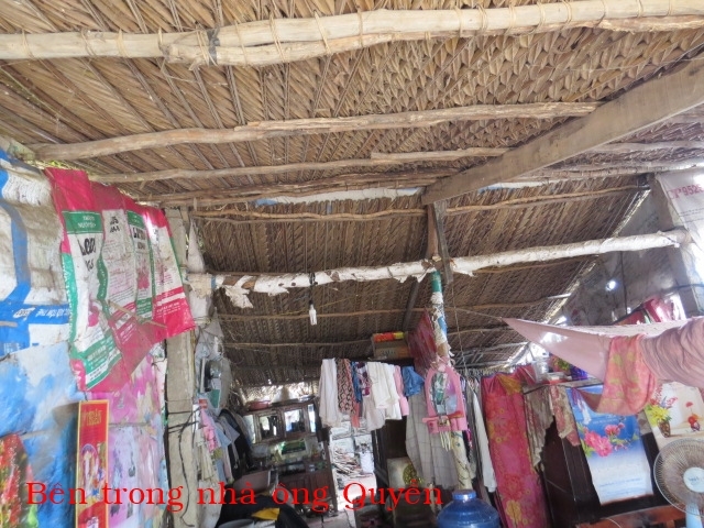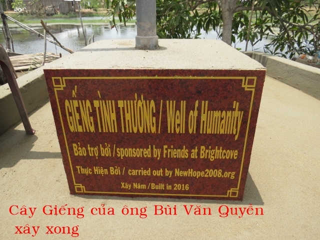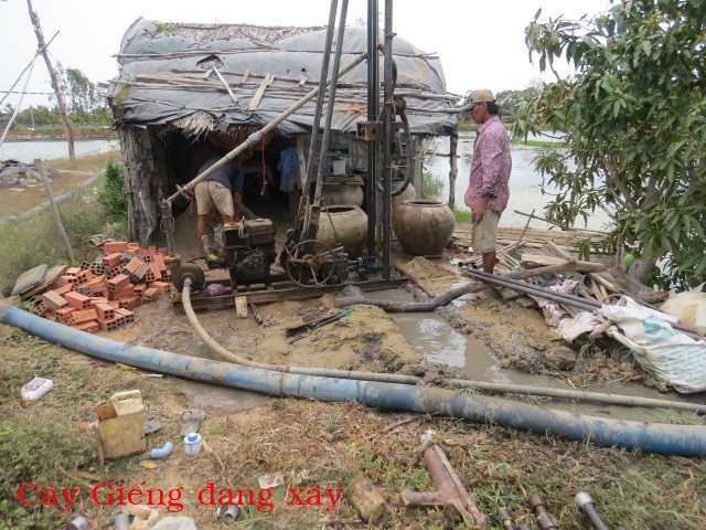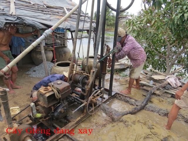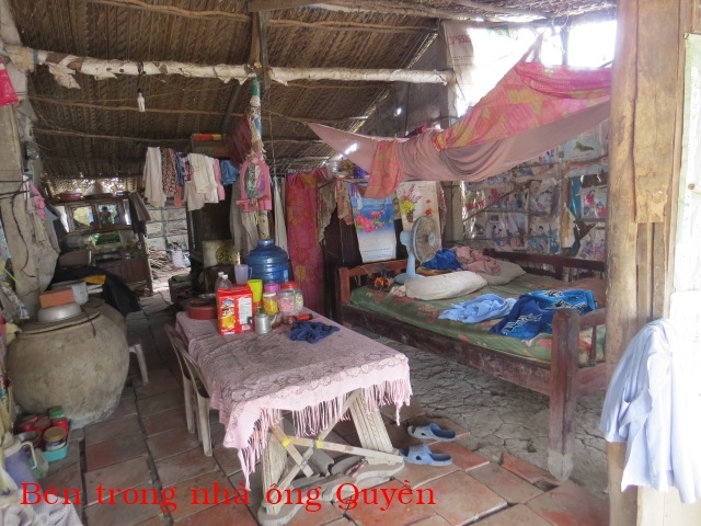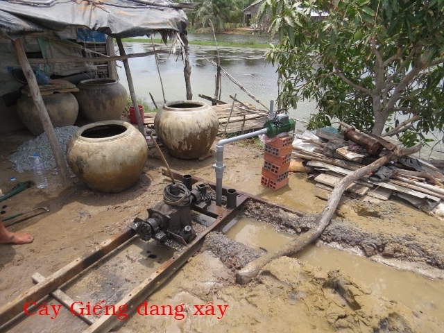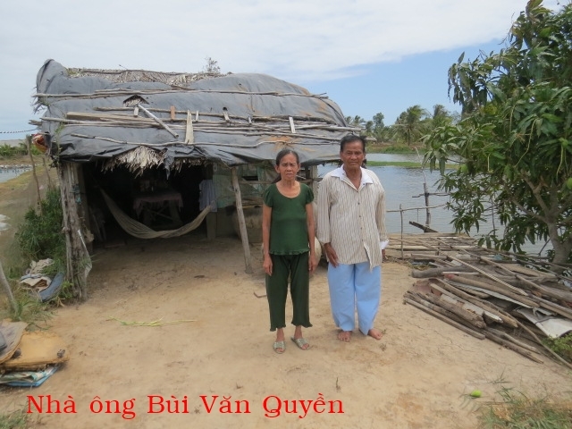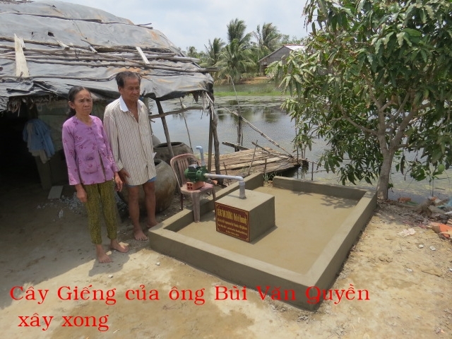 Mr. Bui Van Quyen, age 8, of An Hoi A hamlet, An Thuan village, Thanh Phu district lives with his wife. They do no have any children. They raise tilapia in a small pond and sell them to make a living. They do not have a well and had to collect rain water to use durung the raining season. During the dry season, they use the water in the pond. They barely make enough money to suy food and doi not have any means to build a well.